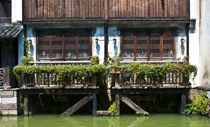 Keywords: building ancient architecture china wind antiquity the ming and qing dynasties huizhou architecture wood frame wooden tile green black white line doors and windows brown plant tengman river green lamp the mottled