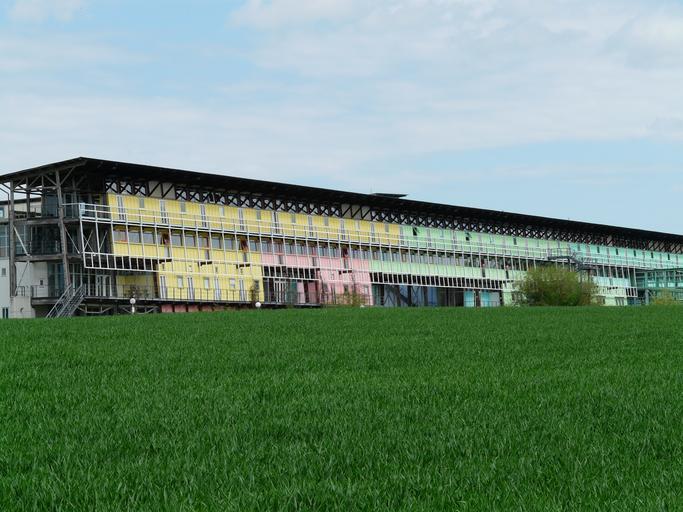 Keywords: building colorful university architecture ulm university of ingenieurwissenschaften meadow green sky