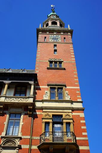 Keywords: building historically architecture historic building old town historic old town houses facades town hall clock east frisia facade sky imposing structure blue sky sky building leer