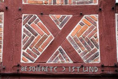Keywords: building home truss pattern masonry house inscription inscription font red brown