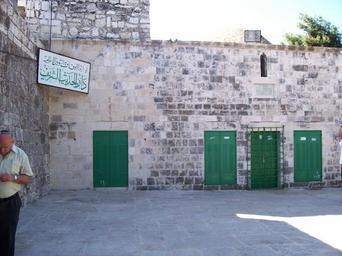 | Keywords: Building in temple mount.jpg Solomon's Throne at the eastern side of the Temple Mount north of the Golden Gate כסא ש מה בצדו המזרחי ש הר הבית צפונית שער הרחמי self-photographed 2007-04-04 Yaakov Shoham public domain Temple Mount Green doors Doors in Jerusalem 2007 photographs Signs in Jerusalem Arabic language signs |