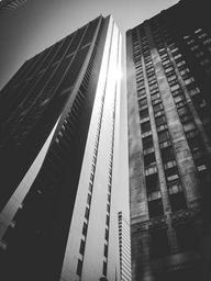 Keywords: building skyscraper black and white urban city architecture modern downtown tower corporate perspective tall exterior windows highrise midtown structure