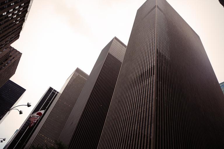 Keywords: buildings city urban cityscape skyscraper towers downtown metropolis metropolitan structure new york highrise flags sky windows architecture