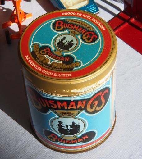 Keywords: Buisman GS koffie pic4.JPG Buisman GS koffie own 2012-08-19 09 49 34 AlfvanBeem CC-zero Trademarked Coffee tins Buisman coffee