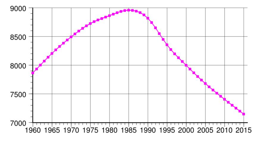 Keywords: Bulgaria population.svg en Bulgaria population 1960-2015 From UN estimates World Population Prospects http //esa un org/unpd/wpp/Excel-Data/population htm The 2015 Revision<br/>Y-axis Number of inhabitants in thousands 2016-02-12 own Delphi234 other versions Generated with Wikimedia SVG Chart SVG Chart/box cc-zero Temporal population graphs of Bulgaria Diagrams labelled with numbers only |