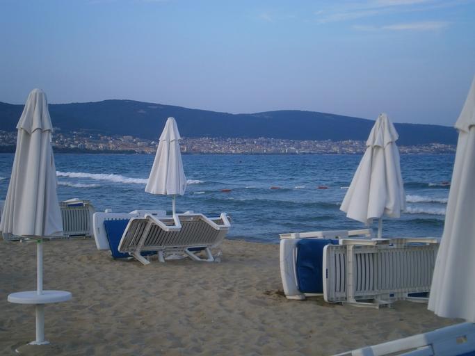 Keywords: bulgaria sea sand beach evening parasol sun lounger sunny beach