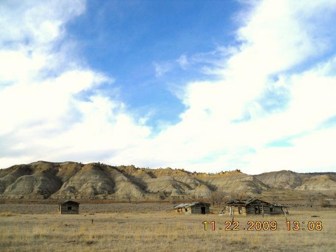 | Keywords: BullBottoms-11.22 09.JPG en Homestead Buildings Bull Creek Bottoms Missouri Breaks Montana own all rights released montana geogaphical society 2009-11-22 Permission is granted to copy distribute and/or modify this document under the terms of the GNU Free Documentation License The three buildings are remnants of homestead buildings at Bull Creek Bottom adjacent to Cow Creek Bottom in the Missouri Breaks of Montana Bull Creek Bottom is about 21 to 22 miles above the Fred Robinson Bridge on the Missouri where U S Highway 161 crosses the Missouri River in the breaks and about 25 miles northeast of Winifred MT The view is looking south down to the mouth of Bull Creek toward the Missouri River which runs along the base of the bluffs in the distance Cow Island is located at this point in the Missouri The homestead is located in an isolated remote portion of the Missouri Breaks in Montana The breaks are so named because of the rough badland-type terrain extending out on either side of the Missouri River for over a hundred miles The area is mostly traversed by dirt roads which literally become impassible when wet because the soil in this area contain bentonite which causes mud to cake up around the wheels of any vehicle Cow Creek Montana Upper Missouri River Breaks National Monument |