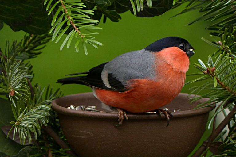 Keywords: bullfinch pyrrhula bird males garden foraging