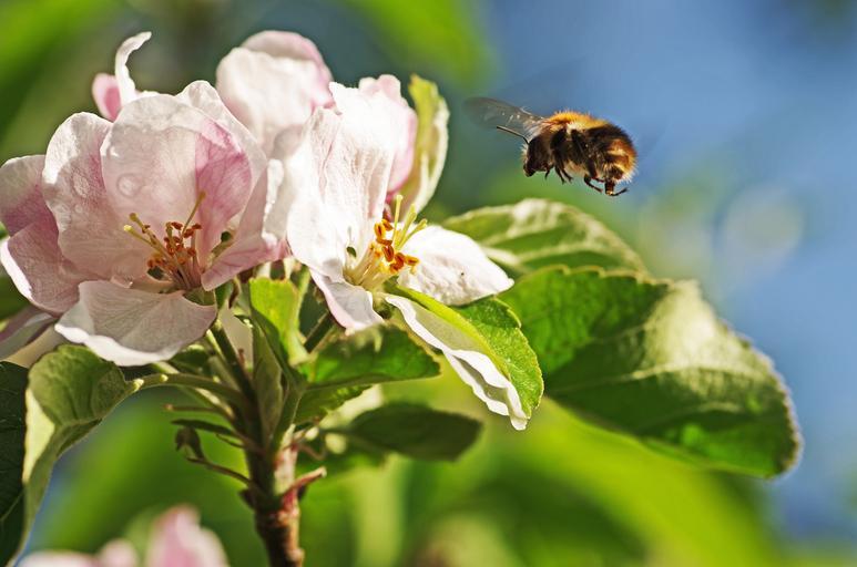 Keywords: bumblebee apple blossom flight bug pollen spring summer