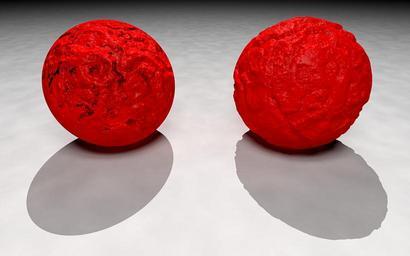 Keywords: Bump map vs isosurface.png Created with Persistence of Vision ray traced images bump maps can be used to model extensive peturbations to a surface by changing the way the surface appears to be illuminated The technique is however limited in that it does not actually modify the shape of the underlying object The sphere to the left has had a bump map applied to mimic a crumbling surface but neither the sphere's outline nor its shadow are affected The sphere to the right uses a similar bump map as an isosurface function to actually modify the size and shape of the underlying sphere Both the outline and the shadow are affected POV-Ray code <syntaxhighlight lang povray > version 3 6; global_settings assumed_gamma 1 0 ambient_light 0 radiosity pretrace_start 0 08 // start pretrace at this size pretrace_end 0 04 // end pretrace at this size count 35 // higher -> higher quality 1 1600 35 nearest_count 5 // higher -> higher quality 1 10 5 error_bound 1 8 // higher -> smoother less accurate 1 8 recursion_limit 3 // how much interreflections are calculated 1 5+ 3 low_error_factor 5 // reduce error_bound during last pretrace step gray_threshold 0 0 // increase for weakening colors 0 1 0 minimum_reuse 0 015 // reuse of old radiosity samples 0 015 brightness 1 // brightness of radiosity effects 0 1 1 adc_bailout 0 01/2 normal on // take surface normals into account off media off // take media into account off always_sample on // turn sampling in final trace off on max_sample 1 0 // maximum brightness of samples fog fog_type 1 distance 10 rgb 0 turbulence 5 // ---------------------------------------- camera location <0 0 1 5 -4> direction z right x image_width/image_height look_at <0 0 0 -1 4> light_source <0 6 -4> color rgb <1 1 1> 25 area_light <3 0 0> <0 0 3> 10 10 orient circular light_source <0 100 80> color rgb <1 1 1> // ---------------------------------------- plane y -1 pigment color rgb 1 finish ambient 0 declare mytex texture pigment colour rgb <1 0 0> finish specular 0 1 roughness 01 diffuse 9 ambient 0 reflection 0 include functions inc declare bump_func function f_agate x/ 5 y/ 5 z/ 5 1 //the internal agate pattern scaled to give the desired effect declare sphere_func function x y z Radius pow x 2 +pow y 2 +pow z 2 -pow Radius 2 //a function to create a sphere isosurface function sphere_func x y z 1 -bump_func x y z max_gradient 8 contained_by box -2 2 texture mytex translate x 1 5 sphere 0 1 texture mytex normal agate scale 5 bump_size 1 1 translate -x 1 5 </syntaxhighlight > own GDallimore 2010-10-10 thumb left Updated version with improved quality bump map and increased similarity between the surface textures of the two spheres for easier comparison Spheres Demo effects Bump mapping Ray tracing Widescreen desktop backgrounds Isosurfaces 3D test models Images with Povray source code </syntaxhighlight> |