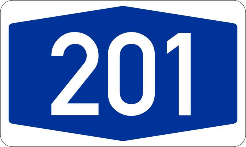 Keywords: Bundesautobahn 201 number.svg Bundesdeutsche Autobahnnummer Automatisch erzeugt durch 3247 German Autobahn number signet Created automatically by 3247 Bundesautobahn numbers 201 201 number