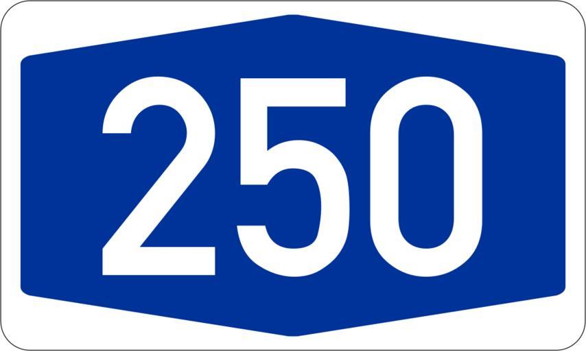 Keywords: Bundesautobahn 250 number.svg Bundesdeutsche Autobahnnummer Automatisch erzeugt durch 3247 German Autobahn number signet Created automatically by 3247 Bundesautobahn numbers 250 250 number