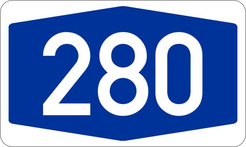 Keywords: Bundesautobahn 280 number.svg Bundesdeutsche Autobahnnummer Automatisch erzeugt durch 3247 German Autobahn number signet Created automatically by 3247 Bundesautobahn numbers 280 Bundesautobahn 280 280 number