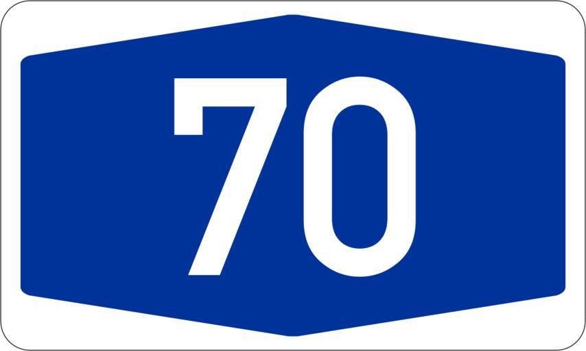 Keywords: Bundesautobahn 70 number.svg Bundesdeutsche Autobahnnummer Automatisch erzeugt durch 3247 German Autobahn number signet Created automatically by 3247 Bundesautobahn numbers 070 70 number