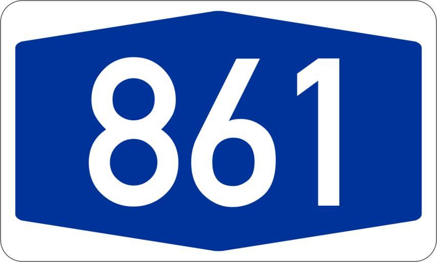 Keywords: Bundesautobahn 861 number.svg Bundesdeutsche Autobahnnummer Automatisch erzeugt durch 3247 German Autobahn number signet Created automatically by 3247 Bundesautobahn numbers 861 Bundesautobahn 861 Nummer 861 number Bundesautobahn Diagrams of blue and white road number signs |
