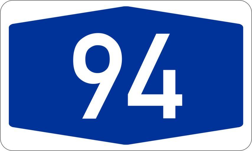 Keywords: Bundesautobahn 94 number.svg Bundesdeutsche Autobahnnummer Automatisch erzeugt durch 3247 German Autobahn number signet Created automatically by 3247 Bundesautobahn numbers 094 Bundesautobahn 94
