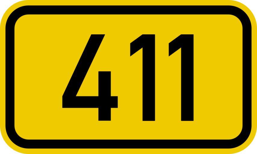 Keywords: Bundesstraße 411 number.svg Bundesdeutsche Bundesstraßennummer Automatisch erzeugt durch 3247 German Federal Road Bundesstraße number signet Created automatically by 3247 Bundesstraßen numbers 411 svg 411 number