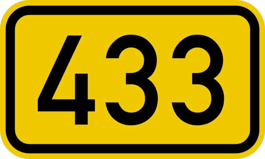 Keywords: Bundesstraße 433 number.svg Bundesdeutsche Bundesstraßennummer Automatisch erzeugt durch 3247 German Federal Road Bundesstraße number signet Created automatically by 3247 Bundesstraßen numbers 433 svg 433 number