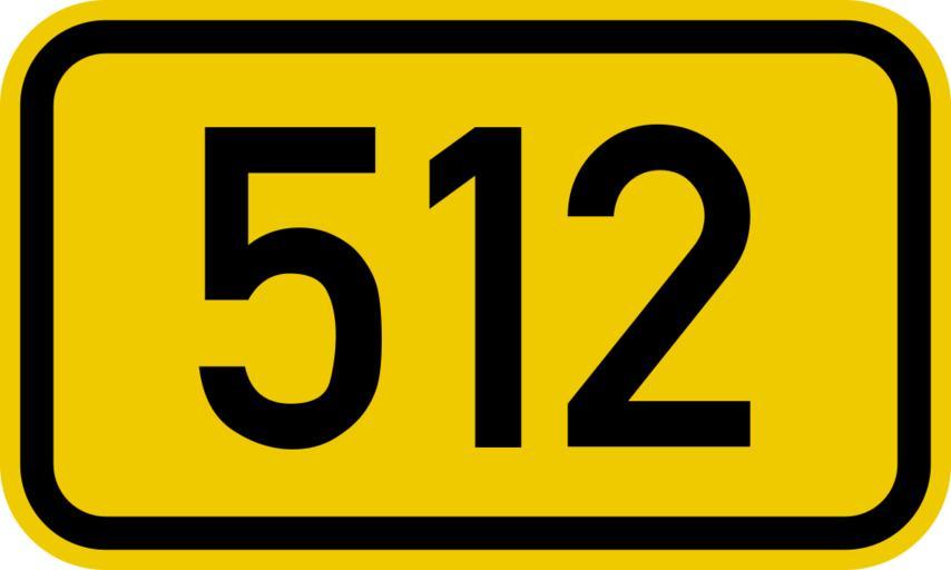 Keywords: Bundesstraße 512 number.svg Bundesdeutsche Bundesstraßennummer Automatisch erzeugt German Federal Road Bundesstraße number signet Created automatically Bundesstraßen numbers 512 svg 512 number
