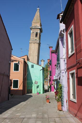 Keywords: burano italy leaning tower colourful houses wrong location campanile