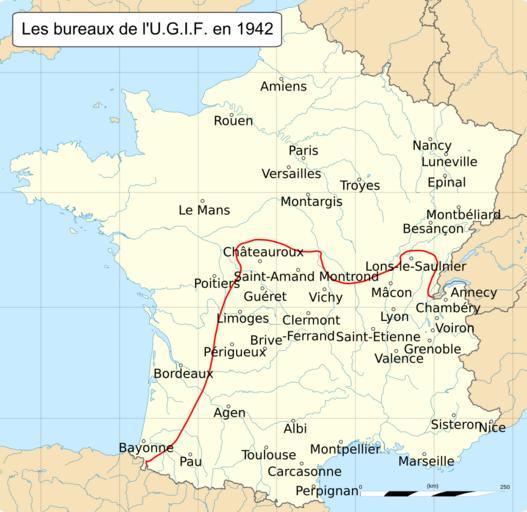 | Keywords: Bureaux de l'UGIF en 1942.svg fr Les bureaux de l'Union Général des Israëlites de France en 1942 Travail personnel d'après Maurice Rajsfus Des juifs dans la collaboration l'U G I F 1941-1944 EDI 1980 p 208 Romain0 04 02 2011 Cc-zero SVG maps of World War II France Demarcation line France |