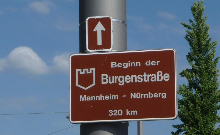 Keywords: Burgenstrasse Mannheim.JPG de Unterrichtungstafel zum Start der Burgenstraße in Mannheim vor dem Schloss en road sign in Mannheim Germany Own Immanuel Giel 2009-06 Unterrichtungstafeln Signs in Mannheim Burgenstraße