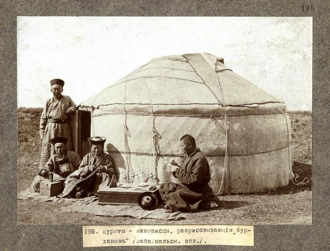 | Keywords: Buriats painters.jpg en Buriats-painters coloring burkhan figures ru Художники аск ашивают Бу ханов http //hdl loc gov/loc ndlpcoop/mtfxph eet0006 Novosibirsk State Museum of Regional History and Folk Life 1900-th PD-old Buryat yurts Buryat people |