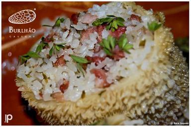 Keywords: Burlhão.jpg pt Existem variados pratos de carne com designações similares Entre a região Sul da Serra de Estrela e a Zona Pinhal no Distrito Castelo Branco existem pratos confeccionados a partir do bucho estômago de caprinos Nas diversas localidades desta região a confecção destes buchos tem diversas receitas e designações A meu ver e por levantamentos que fiz considero a origem deste tipo de iguaria a região sul da Serra da Estrela e a norte da Serra do Açor A Serra do Açor e o distrito de Castelo Branco norte/sul dividirá um conjunto de aromas importantíssimos à distinção da gastronomia regional concretamente quando falamos em hortelã e coentros a sul e a salsa e serpão a norte do distrito a isto se deve a diferenciação feita entre o Maranho e o Burlhão cujos aromas são completamente distinto Pelo que tenho conhecimento na aldeia de Casegas 1177 DC e arredores o Burlhão é confeccionado religiosamente pela Páscoa O Outono é propício à reprodução e a Páscoa é celebrada com a matança dos cabritos Esta região serrana é caracterizada pela qualidade incomparável do gado do queijo e do leite deste gado caprino autóctone conferida pelo relevo e vegetação/alimentação desta serra A actual disponibilidade de carne de caprinos no mercado favoreceu e aumentou o consumo desta iguaria noutras épocas festivas No entanto esta massificação do consumo do produto promoveu alterações nos métodos de produção nomeadamente nos ingredientes necessários à sua confecção O Burlhão hoje em dia tem marca registada O que se pretende com o registo da marca Burlhão é o registo de um produto de culinária ancestral cuja confecção exige procedimentos tradicionais Poderão existir produtos similares contudo pretende-se proteger o Burlhão da adulteração e introdução de métodos de confecção não tradicional O Burlhão consiste no enchimento do bucho de caprino com arroz carne de caprino chouriça de carne presunto toucinho salsa e serpão Tradicionalmente partes o peritoneu ou omento e mesentério do caprino confere um sabor bastante peculiar ao Burlhão à moda do antigamente porém mesmo na região tem vindo a ser retirado nalguns casos dos ingredientes do Burlhão Após o abate do caprino é esfolado e esventrado com muito cuidado para se proceder ao aproveitamento do estômago rúmen retículo omaso e abomaso do caprino Estas vísceras são muito bem lavadas em água cristalina e corrente Em seguida são submetidas à acidez do sumo de limão para limpar a mucosa do estômago O estômago é então cortado com tesoura e fazem-se pequenas bolsas que se costuram com agulha e linha deixando uma pequena abertura por onde vai entrar o recheio preparado com os ingredientes mencionados Essa abertura é fechada e o Burlhão é cozido com água temperada com sal os ossos da cabra e um ramo de serpão Rui Costa Rui Costa - João Pinto - Sara Jaques 2012-01-01 Cc-zero Food of Portugal |