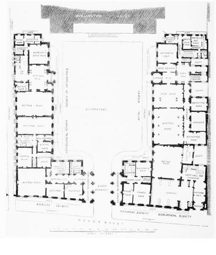 Keywords: Burlington House - Learned societies rooms ground floor plan dated 1871.jpg An 1871 plan of the ground floor of the rooms used by the learned societies at Burlington House London PD-old Floor plans of office buildings Burlington House in art Royal Society when at Burlington House |