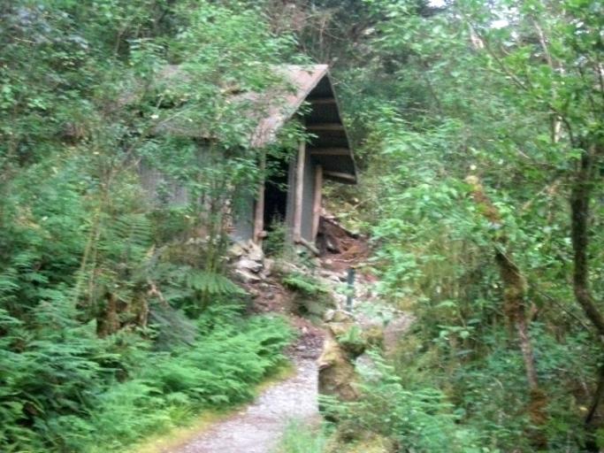 Keywords: Bus Stop shelter 1.jpg Approching Bus Stop Shelter the second DoC shelter on W Milford Track Located between Clinton Hut and Mintaro Hut short before the Pompolona Lodge 2012-12-25 own Sarang Bus Stop Shelter