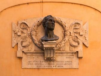 Keywords: Buste Canova, studio via delle Colonnette, Rome, Italie.jpg fr Buste de Canova au mur de son atelier via delle Colonnette Rome Italie en Bust to Antonio Canova on a wall of his workshop via delle Colonnette Rome Italy 1870-01-01 2013-08-24 for photograph own Jebulon 41 907423 12 477001 cc-zero Uploaded with UploadWizard Studio Canova Rome 19th-century bronzes in Italy Portraits of Antonio Canova Quality images by Jebulon QualityImage |