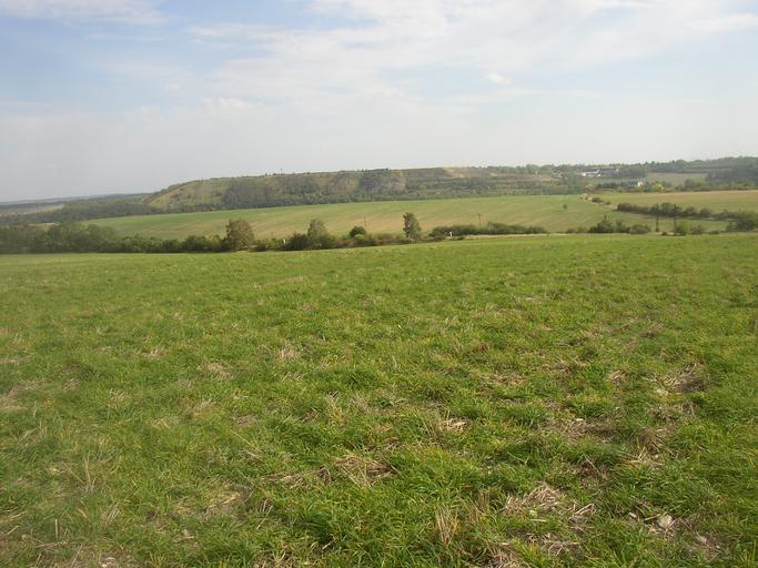 Keywords: Bustehradska halda CZ from NW 029.jpg Buštěhradská halda okres Kladno Celkový pohled od severozápadu z pole na návrší mezi Středočeským pivovarem a Cvrčovicemi Terasy v pravé třetině haldy přibližně naznačují rozsah částí stále používané ke skládkování Vpravo od haldy samota Vrapický Dvůr pod ní poslední domy vlastních Vrapic Pás zeleně přetínající popředí obrazu skrývá železniční trať 093 Kralupy nad Vltavou - Kladno vpravo šikmo přes pole běží cesta ze Cvrčovic do Vrapic Buštěhrad slag heap composed of waste tailings from local steelworks and another industrial waste near city of Kladno Czech Republic A view from the northwest from a field between defunct Central Bohemian Brewery and village of Cvrčovice Approximate extent of still active part is given by terraces in the right 50 10 32 N 14 09 54 E type landmark_region CZ +-100 m Buštěhrad slag heap |