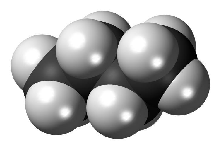 Keywords: Butane 3D spacefill.png Space-filling model of the butane molecule a fuel gas commonly used in lighters and camping stoves Colour code 505050 Carbon C black<br> F0F0F0 Hydrogen H white<br> 2012-07-25 own DS Visualizer Jynto talk Ball-and-stick version Space-filling version cc-zero Butane Images by Jynto |