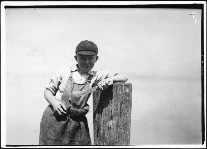 Keywords: Butcher knife used by Ralph, a young cutter in a canning factory, and a badly cut finger. Several children working... - NARA - 523458.jpg Scope and content General notes 523458 Local identifier 102-LH-2446 Department of Commerce and Labor Children's Bureau 1912 - 1913 NARA-Author Hine Lewis Wickes 1874-1940 Photographer 1122914 <br /> Still Picture Records Section Special Media Archives Services Division NWCS-S National Archives at College Park 8601 Adelphi Road College Park MD 20740-6001 1911-08-14 Record group Record Group 102 Records of the Children's Bureau 1908 - 2003 Record group ARC 431 National Child Labor Committee Photographs taken by Lewis Hine compiled ca 1912 - ca 1912 documenting the period 1908 - 1912 Series ARC 523064 File unit File unit ARC Variant control numbers NAIL Control Number NWDNS-102-LH-2446 Other versions <gallery> File Butcher_knife_used_by_Ralph _a_young_cutter_in_a_canning_factory _and_a_badly_cut_finger _Several_children_working _-_NARA_-_523458 tif tif File Butcher_knife_used_by_Ralph _a_young_cutter_in_a_canning_factory _and_a_badly_cut_finger _Several_children_working _-_NARA_-_523458 jpg jpg </gallery> NARA-cooperation PD-USGov People with knives Child labor in the United States Boys at work Black and white photographs of boys 1911 photographs