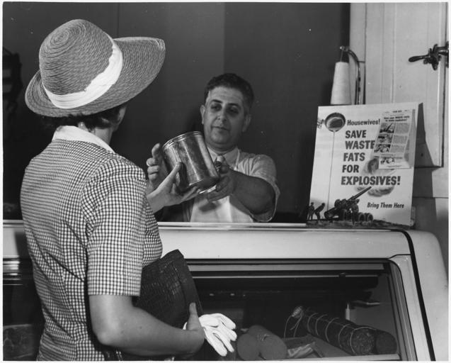 Keywords: dwight d. eisenhower presidential library dwightdeisenhowerpresidentiallibrary u.s. national archives usnationalarchives world war ii worldwarii eisenhowernews nara:arcid=196419 butcher fat lard war drive can blackandwhite monochrome indoor black and white Original Caption: Butchers will pay householdersfor the fat and sell it to rendering plants where it will be processed into ammunition for America's fighting men. U.S. National Archives’ Local Identifier: NLR-PHOCO-A-66178(3) Created By: Roosevelt, Franklin D. (Franklin Delano), 1882-1945 From:: Franklin D. Roosevelt Library Public Domain Photographs Production Date: ca. 06/1942 Persistent URL: arcweb.archives.gov/arc/action/ExternalIdSearch?id=196419 Repository: Franklin D. Roosevelt Library (Hyde Park, NY) Access Restrictions: Unrestricted Use Restrictions: Unrestricted Original Caption: Butchers will pay householdersfor the fat and sell it to rendering plants where it will be processed into ammunition for America's fighting men. U.S. National Archives’ Local Identifier: NLR-PHOCO-A-66178(3) Created By: Roosevelt, Franklin D. (Franklin Delano), 1882-1945 From:: Franklin D. Roosevelt Library Public Domain Photographs Production Date: ca. 06/1942 Persistent URL: arcweb.archives.gov/arc/action/ExternalIdSearch?id=196419 Repository: Franklin D. Roosevelt Library (Hyde Park, NY) Access Restrictions: Unrestricted Use Restrictions: Unrestricted |
