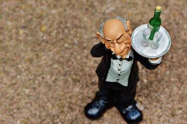 Keywords: butler tray beverages wine champagne operation gastronomy man funny upper restaurant waiter