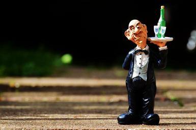 Keywords: butler tray beverages wine champagne operation gastronomy man funny upper restaurant waiter