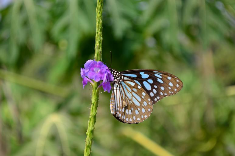 Keywords: butterfly blue tiger tirumala limnacea fauna blue insect sitting flower india