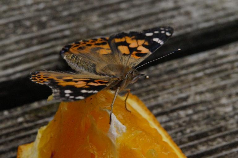 Keywords: butterfly edelfalter butterflies insect close animal summer spring orange wing food intake suck drink nutrition fruit feeding feed attracted