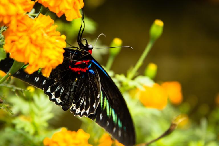 Keywords: butterfly flower trogonoptera brookiana rajah brooke's birdwing wings flowers black green red