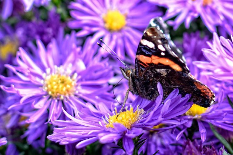 Keywords: butterfly herbstastern aster dumosus asters composites flower autumn blossom bloom purple violet purple flower admiral vanessa atalanta edelfalter