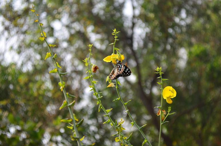 Keywords: butterfly tiger tirumala limnacea blue insect blossom india
