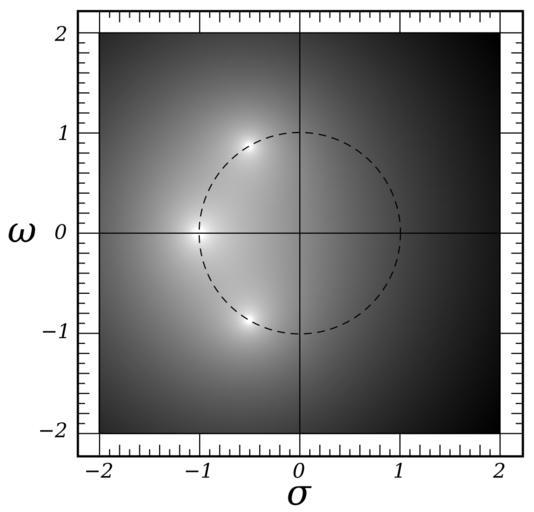 Keywords: Butterworth Filter s-Plane Response (3rd Order).svg Butterworth filter Values less than 0 01 are black; greater than 20 are in white Also shown is the unit circle upon which all poles lie <sub>0</sub> 1 own Inductiveload Mathematica Code <pre><nowiki> buttergains_ 1/ 1 + 2 s + 2 s 2 + s 3 ; DensityPlot min 0 01; max 20; LogAbsbuttergainsig + I w sig -2 2 w -2 2 PlotRange -> Logmin Logmax PlotPoints -> 100 ColorFunction -> GrayLevel ClippingStyle -> Black White </nowiki></pre> Butterworth filters Pole-zero plots |