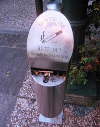 Keywords: Buttout.jpg A Butt Out Australia cigarette disposal canister in Brisbane Australia Photo taken by myself en wikipedia Liftarn CommonsHelper 2007-03-10 SMC wikipedia en SMC Original upload log page en wikipedia Buttout jpg 2007-03-10 01 20 SMC 1944×2592× 884567 bytes <nowiki>A Butt Out Australia cigarette disposal canister in Brisbane Australia Photo taken by myself </nowiki> Cigarette-stub bins