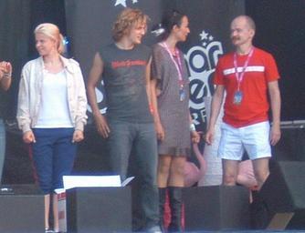 Keywords: BWO-Robyn-2005.jpg The three members of the Swedish pop group BWO right alongside Swedish pop singer-songwriter Robyn left during an on-stage radio show at Gatufesten in Sundsvall Sweden From left to right Robyn Martin Rolinski Marina Schiptjenko Alexander Bard Self-made work Fujifilm FinePix A303 camera Adjusted for composition using GIMP 2005-07-09 Hans Lindqvist PD-Sweden-self BWO Alexander Bard Marina Schiptjenko Martin Rolinski Robyn Gatufesten 2005 in Stenstan |