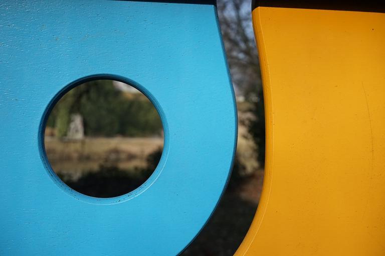 MAKE A MEME View Large Image by looking see through hole wall wood blue orange