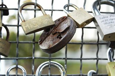 Keywords: by wlodek castle metal silver metallic rust closed safety keyhole old