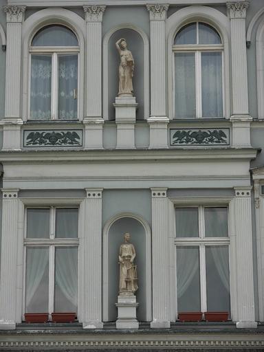 Keywords: Bydgoszcz Rzeźby na kamienicy Stary Rynek płd pierzeja.jpg pl Stary Rynek w Bydgoszczy - rzeźby Fortuna i Merkury w kamienicy nr 16 own Pit1233 2007 16 Old Market Square in Bydgoszcz Niches in Bydgoszcz Allegorical sculptures in Bydgoszcz