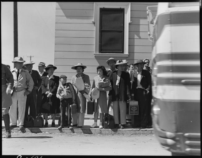 | Keywords: Byron, California. Families of Japanese ancestry, evacuated from Contra Costa County, await bus whi . . . - NARA - 537456.jpg Scope and content The full caption for this photograph reads Byron California Families of Japanese ancestry evacuated from Contra Costa County await bus which will transport them to assembly center at Turlock fairgrounds 65 miles away Evacuees will be transferred to War Relocation Authority centers where they will spend the duration General notes 537456 Local identifier 210-G-C101 Department of the Interior War Relocation Authority 02/16/1944 - 06/30/1946 NARA-Author Lange Dorothea 1895-1965 Photographer 1372774 <br /> Still Picture Records Section Special Media Archives Services Division NWCS-S National Archives at College Park 8601 Adelphi Road College Park MD 20740-6001 1942-05-02 Record group Record Group 210 Records of the War Relocation Authority 1941 - 1989 Record group ARC 537 Central Photographic File of the War Relocation Authority compiled 1942 - 1945 Series ARC 536000 File unit File unit ARC Variant control numbers NAIL Control Number NWDNS-210-G-C101 Other versions <gallery> File Byron _California _Families_of_Japanese_ancestry _evacuated_from_Contra_Costa_County _await_bus_whi_ _ _ _-_NARA_-_537456 tif tif File Byron _California _Families_of_Japanese_ancestry _evacuated_from_Contra_Costa_County _await_bus_whi_ _ _ _-_NARA_-_537456 jpg jpg </gallery> NARA-cooperation PD-USGov Dorothea Lange Japanese American internment processing in Byron California |