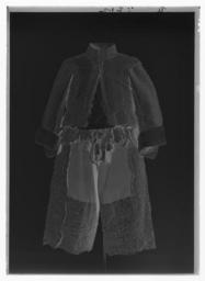 Keywords: Byxor av brunaktig grå, oskuren sammet som tillhört Karl X Gustav (1622-1660), ca 1650 - Livrustkammaren - 18481-negative.tif Byxorna är av samma grå oskurna sammet som kappan och av rak modell De är gjorda av 4 stycken som förutom sidorna sytts samman fram och bak Mitt framtill är ett c a 30 cm långt sprund som knäpps med en 25 cm lång knäppslå Byxorna är med glesa rynkor fästade vid en 122 cm lång linning - försedd med blott en enda skarv Denna har 6 metallhakar vilka genom fodret på baksidan trätts genom linningen I linningen återstår för närvarande blott de 5 cm långa knapphålen ty de 2 knapparna saknas I knäppslån sitter 8 st knapphål 2 cm långa sydda av 2 trådar av brunt högertvinnat silke med 5 stygn/cm Samma antalknappar finns kvar på motstående sida De är av samma sort som tröjans guld- och silvertrådsklädda knappar Byxorna har i sidsömmarna 17 cm långa sprund för de stora ficksäckarna av skinn Dessa liksom knäppslån är fodrade med samma slags brokad som tröjansfoder <br/><br/>Anmärkningsvärt är att dessa byxor saknar såväl den vanligen förekommande lilla urfickan i linningen på vänster sida framtill som den mindre vertikala fickan på högra framsidan Byxorna är på insidan fodrade med vit linnelärft c a 26x23 tr/cm2 mellanfoder saknas Byxorna är garnerade med en 15 5 cm bred oliksidig knypplad uddspets av guld- och silvertråd samma slag som på kappan Den är påsydd i 2 rader nertill runt benen samt 1rad på varje sida om sidsömmen Som garnering har dessutom bandrosetter sytts fast runt hela midjan delvis på och delvis strax under linningen <br/><br/>Nu finns 20 st sådana rosetter samt något längre ner framtill 3 rosetter på vänster sida och 2 på höger Spår efter ytterligare 2 rosetter finns på linningen och vidare bör det ha funnits en rosett som sprättats bort från höger sida M a o det stämmer bra med 1671 års inventarium som omtalar 28 st silver- guld- och silkesband Rosetterna har knutits i 2 öglor och 2 ändar dels av ett bredare band i silver och mörk olivfärgat silke b 3 3 cm delas av ett smalare band knutet på samma sätt i övervägande vitt och silver b 1 2 cm Bandåtgången kan beräknas till varje rosett av det breda bandet har dragit c a 58 cm varje rosett av det smala bandet har dragit c a 56 cm Om det ursprungligen funnits 28 rosetter har bandåtgången varit 16 24 meter för breda band och 15 68 meter för smala band <br/><br/>Där spetsgarneringen fastsytts har man under sammeten lagt in ett foder av grövre vävnad På höger framsida har byxorna ett urbränt stycke i linnefodret Likaså är hål brända på byxornas insida vid hakarna närmast fickorna Vid något senare tillfälle har man lagt ett veck framtill på varje sida på linningen och 2 hyskor och hakar har sytts fast Byxorna är märkta med bläck baktill N 44 samt har en lapp med inskr 34 Det förra numret från 1789-90 års inventarium det senare till 1821 1850 och 1855 års inv original caption 1647 velvet Färg grå d1 - dräkt - yttermaterial material sammet size cm 122 midjemått LRK Karl X Gustav av Sverige Tre Karlar 1984-1985 Kungligt klädd 1987-1989 Modelejon 2002 place of origin original filename LN_B10722_013602 56375 inventory number LRK 19830 18481 CC0 Byxor av brunaktig grå oskuren sammet som tillhört Karl X Gustav 1622-1660 ca 1650 - Livrustkammaren - 18481 tif <gallery caption Different images of same object > File Byxor av brunaktig grå oskuren sammet som tillhört Karl X Gustav 1622-1660 ca 1650 - Livrustkammaren - 9919 tif File Byxor av brunaktig grå oskuren sammet som tillhört Karl X Gustav 1622-1660 ca 1650 - Livrustkammaren - 78404 tif File Byxor av brunaktig grå oskuren sammet som tillhört Karl X Gustav 1622-1660 ca 1650 - Livrustkammaren - 1359 tif </gallery> |